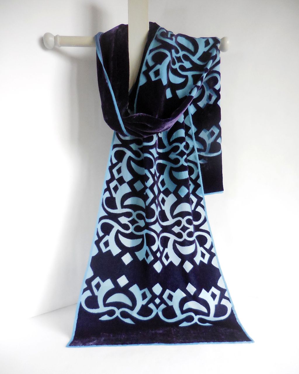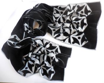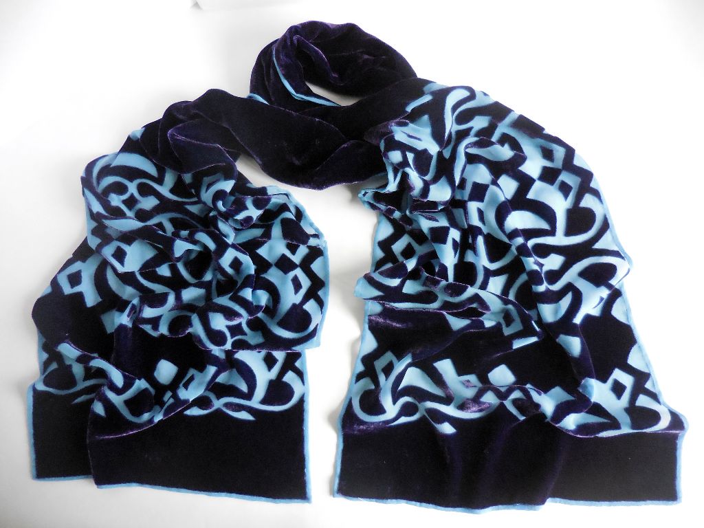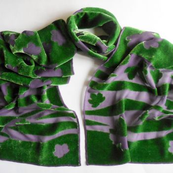 I am a designer/maker of luxurious, colourful screen-printed devoré velvet scarves, produced in limited edition print runs under my design label 'Solstice Moon'. All processes, from printing, processing, dyeing and finishing, are completed by hand in my studio. I also produce a range of eco/botanical printed accessories - silk scarves, calico bags, mounted and framed collages and prints, as well as greetings cards and other small items, with prices to suit all budgets.