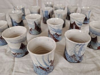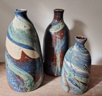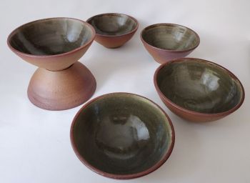 My wood fired pots also reflect a strong local character, using Dobles stoneware and a Leach treadle wheel, they are glazed with wood ash and other mixed raw materials. My small kiln is fuelled by coppiced native species harvested from the land. The dynamic atmosphere of burning wood permanently fixes varied elemental effects onto the clay surfaces.