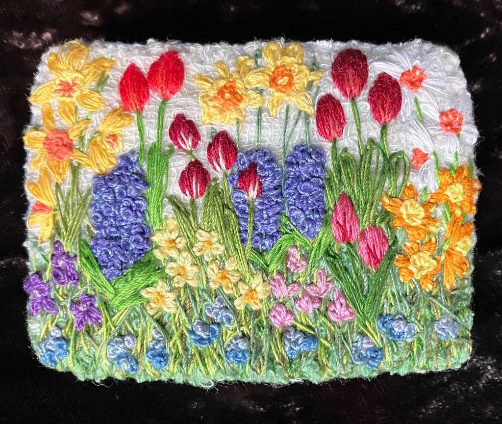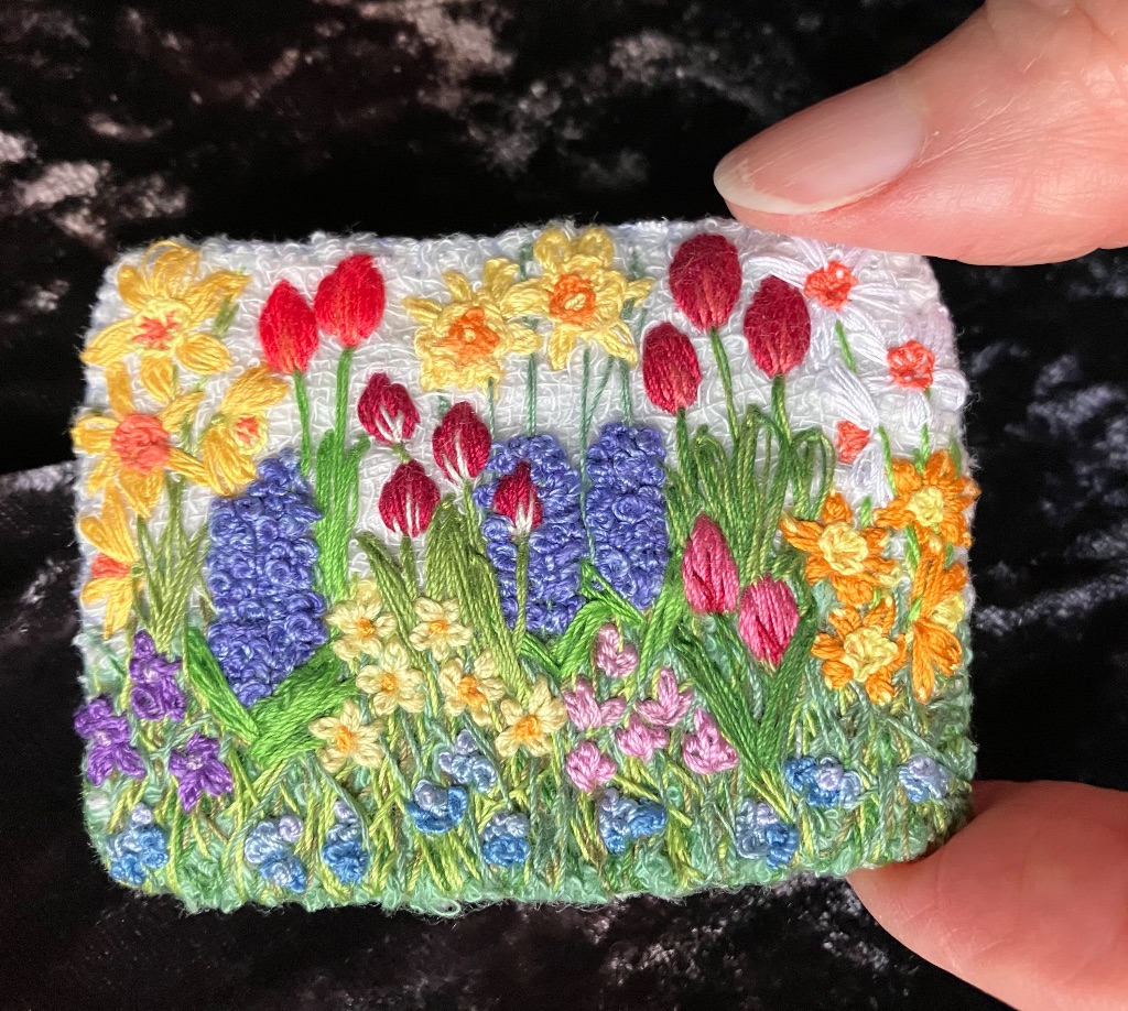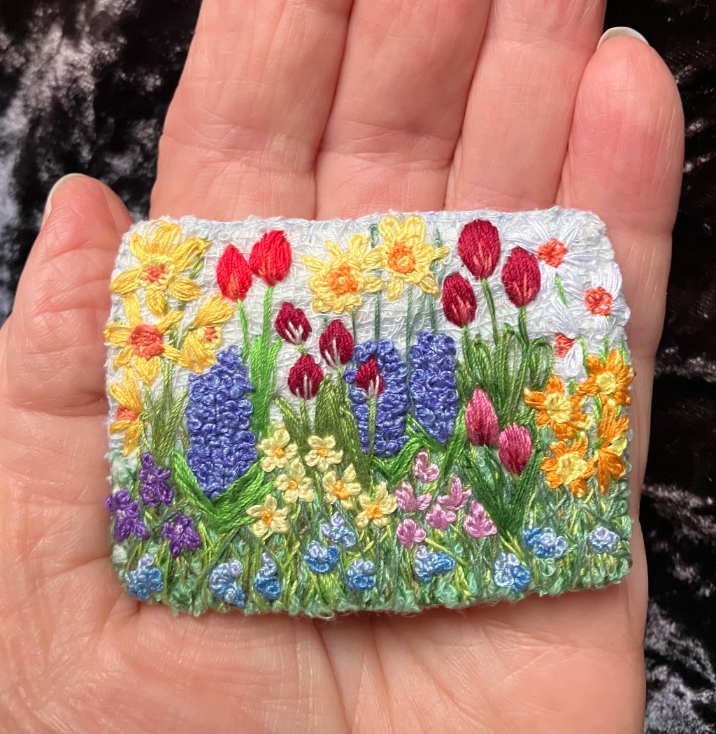 A self-taught, life-long embroiderer, I have been making textile art for ten years, since retiring from a career teaching English. My former study has become a workroom stuffed with fabric, thread and the paraphernalia of an enthusiastic creative life: art, books and quirky objects.