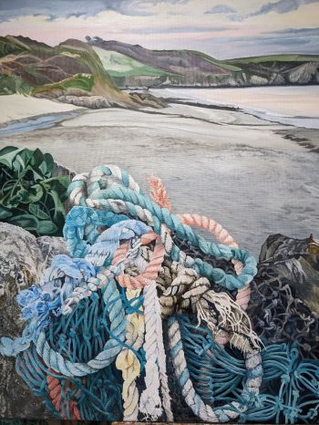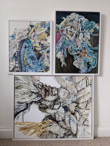 I see everything as textures, shapes and colours. If it catches my eye and makes me feel WOW, then it becomes a subject for me to work with. The last few years have been filled with oil paintings of ropes,nets and fishing debris I have found abandoned on beaches. My work is very textural, using thick scumble and colours have to make my mouth water! The work I create has leanings towards abstraction, whilst still containing the realism of knotted intertwined ropes and nets.