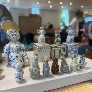 I make small ceramic pieces in my studio in Porthleven. I make a range of worry pebbles, goddesses, individual letters, earrings, cups and plates. I hand build all my pieces, so every single one is completely different to the next. I use a range of clay in my work, as I love the different colours and textures they all give. My inspiration comes mystical imagery and as my background is in textiles, I love texture and pattern in my pieces.