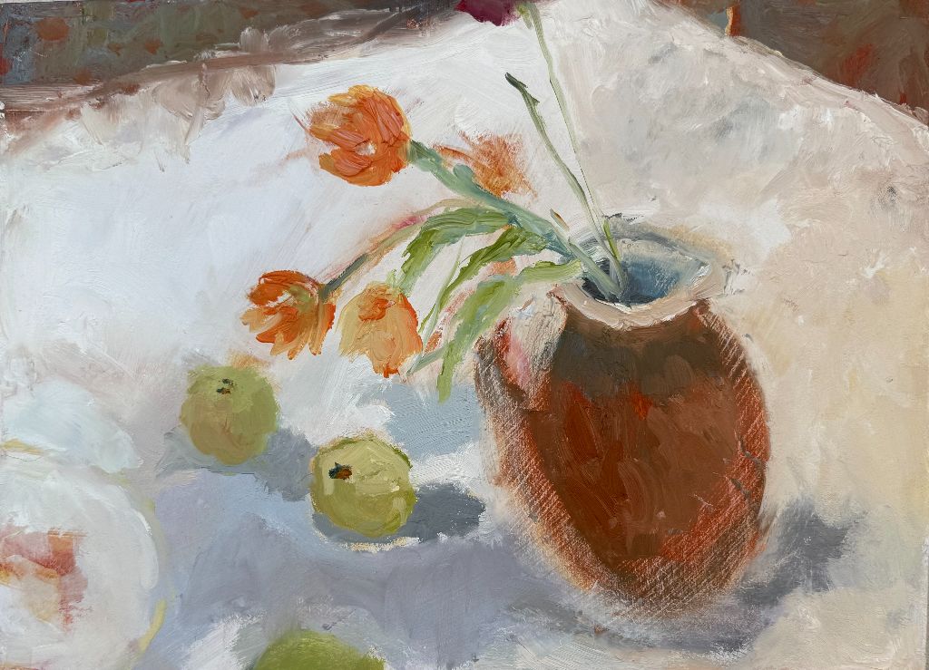 Pear Tree Studio - I have paintings displayed on the walls to view. There are some prints, and also cards.