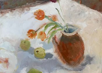 I grew up in St Ives in the fifties and I love the wild Cornish landscape, this has always been an inspiration for my work. My work is semi abstract and it is more about the poetry of a place rather than the literal space. I am also attracted to still life, gardens and flowers. This could be formal gardens like parks, or wild gardens - I like the changing seasons and colours. Recently a short professional film was made about my work as an artist, it is called Sally's Story on YouTube