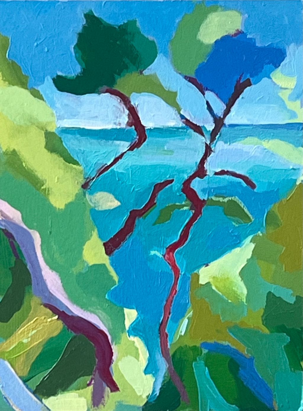 Diane Hadden is a painter originally from Northern Ireland. She has lived in Cornwall since 1999 and currently has a studio at Trewidden Artists Studios near Penzance in Cornwall. She studied Painting & Printmaking at Hull 1985-88 followed by a Post Graduate Year in Cyprus in 1988-89. This Mediterranean experience has had lasting effect on her work with a strong love for colour and light in the natural landscape. Rural and coastal landscapes are her main source of inspiration. She is largely influenced by Impressionists, Abstract Expressionism and Fauvism.