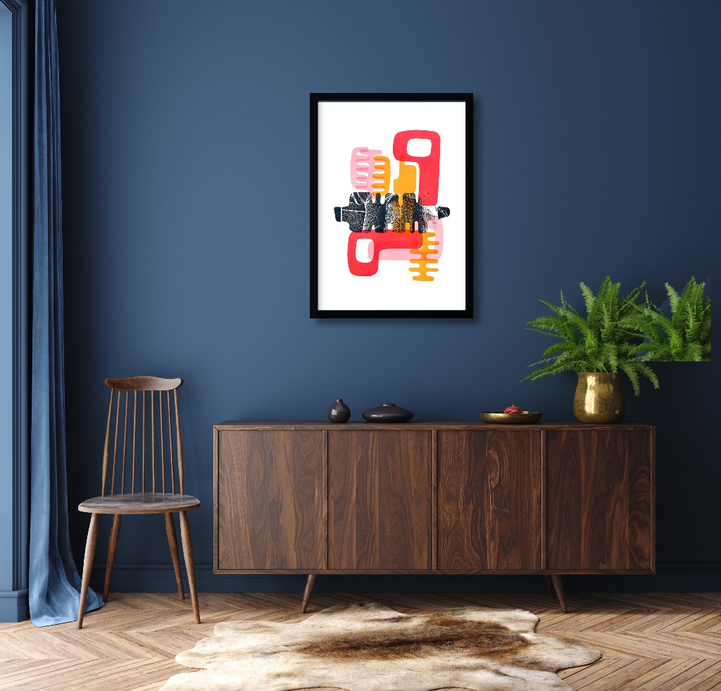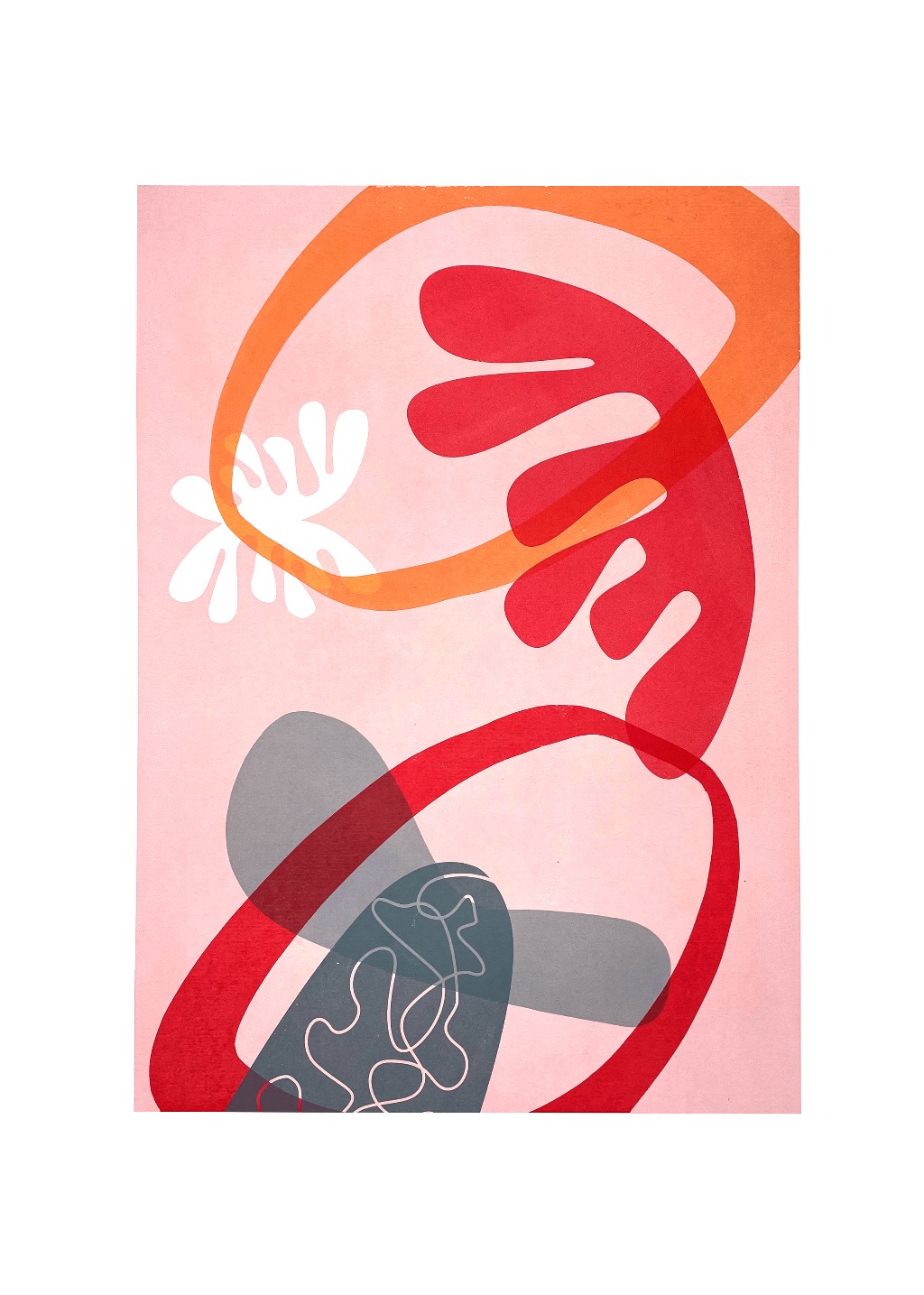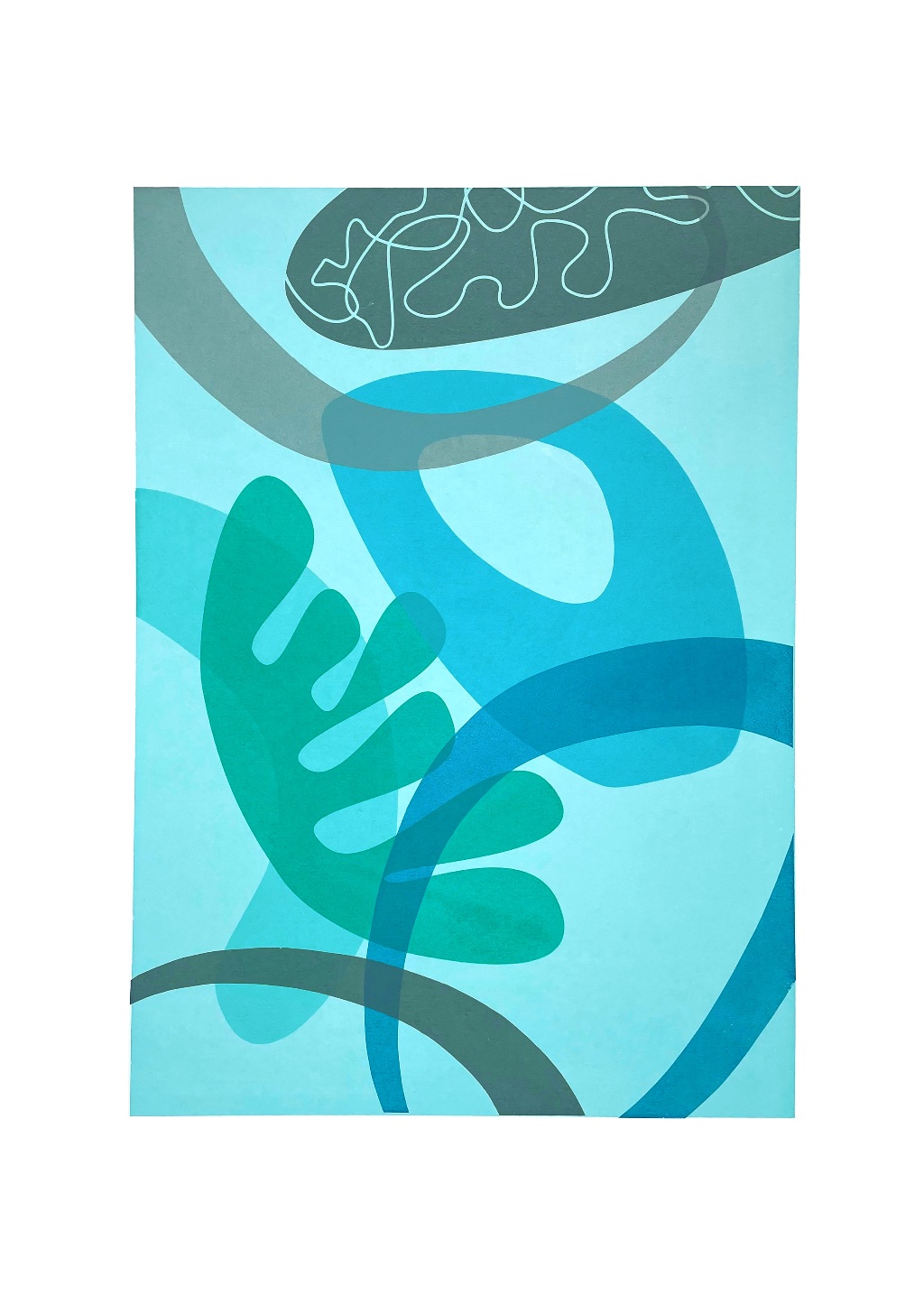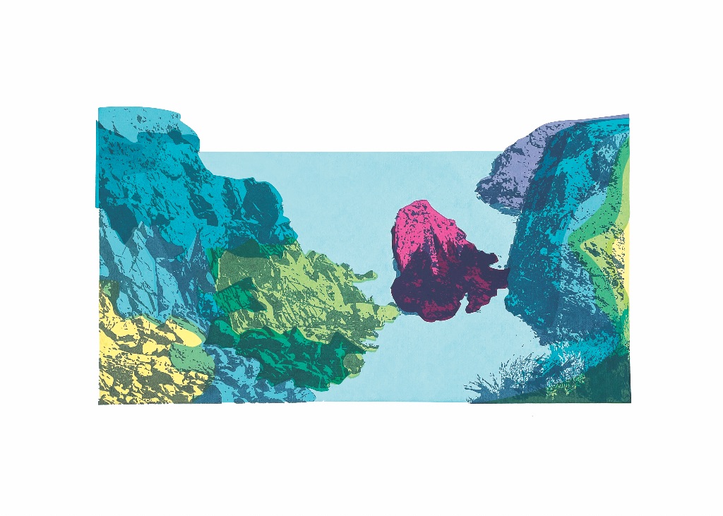 My screen prints are bold and colourful. They range from descriptive, often of local landmarks to abstract shapes and textures inspired by my environment.