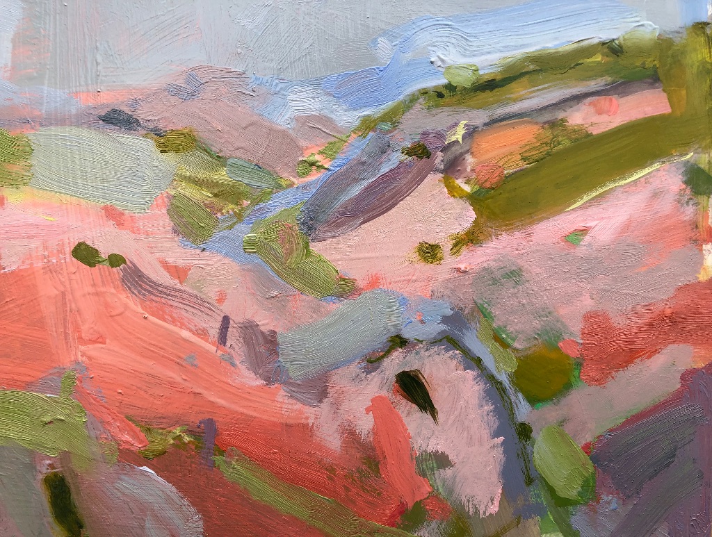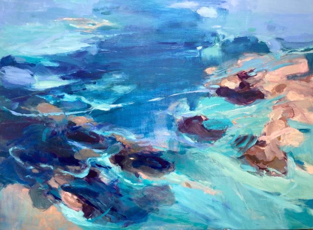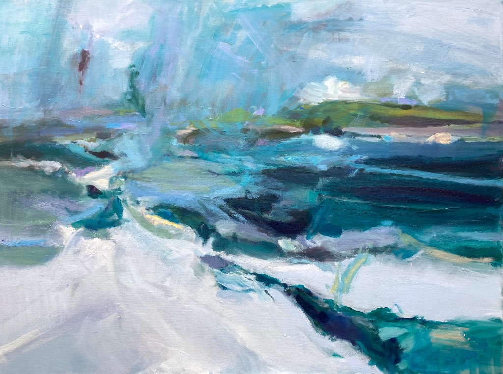 Catherine’s work gives just enough visual connection to place to pull the viewer into her world of dynamic, abstract, delicious colour and allows space for the viewer to embark on their own journey within the painting.