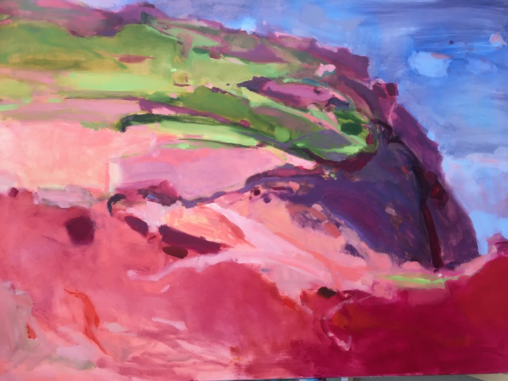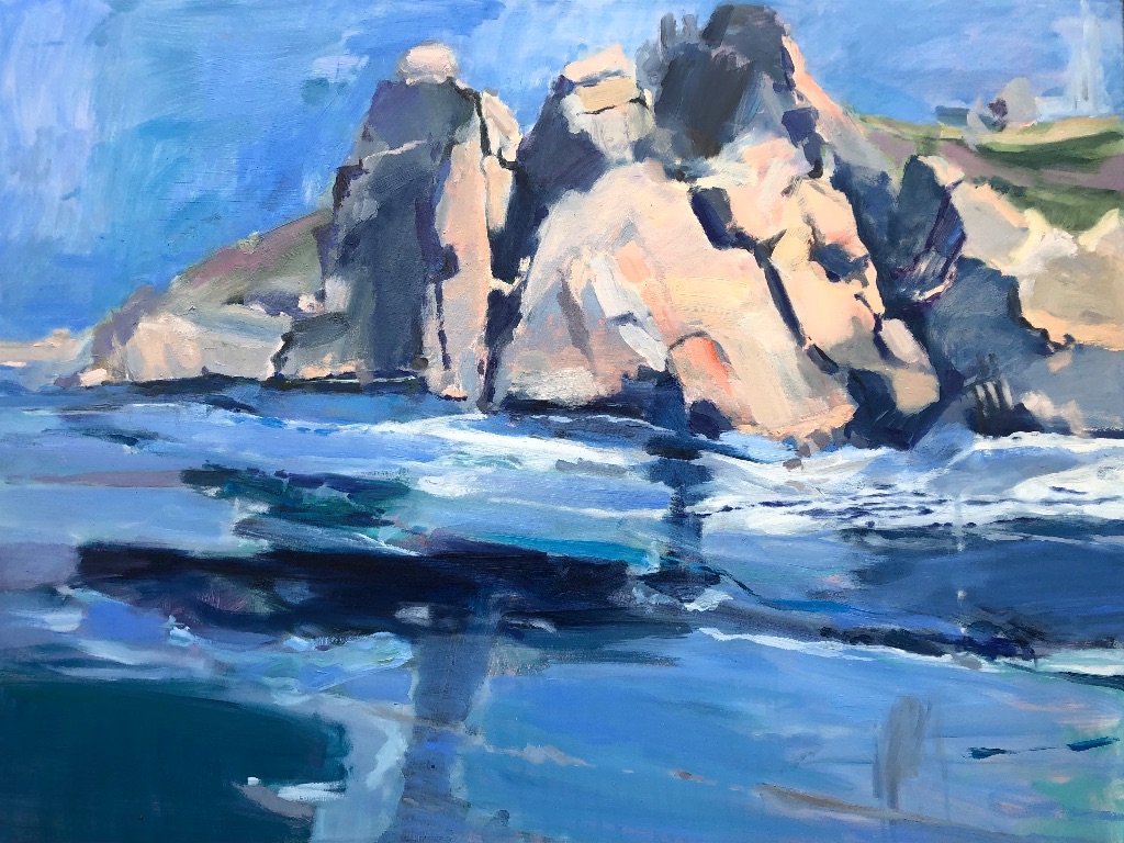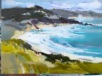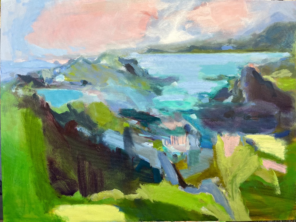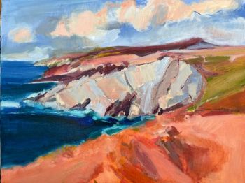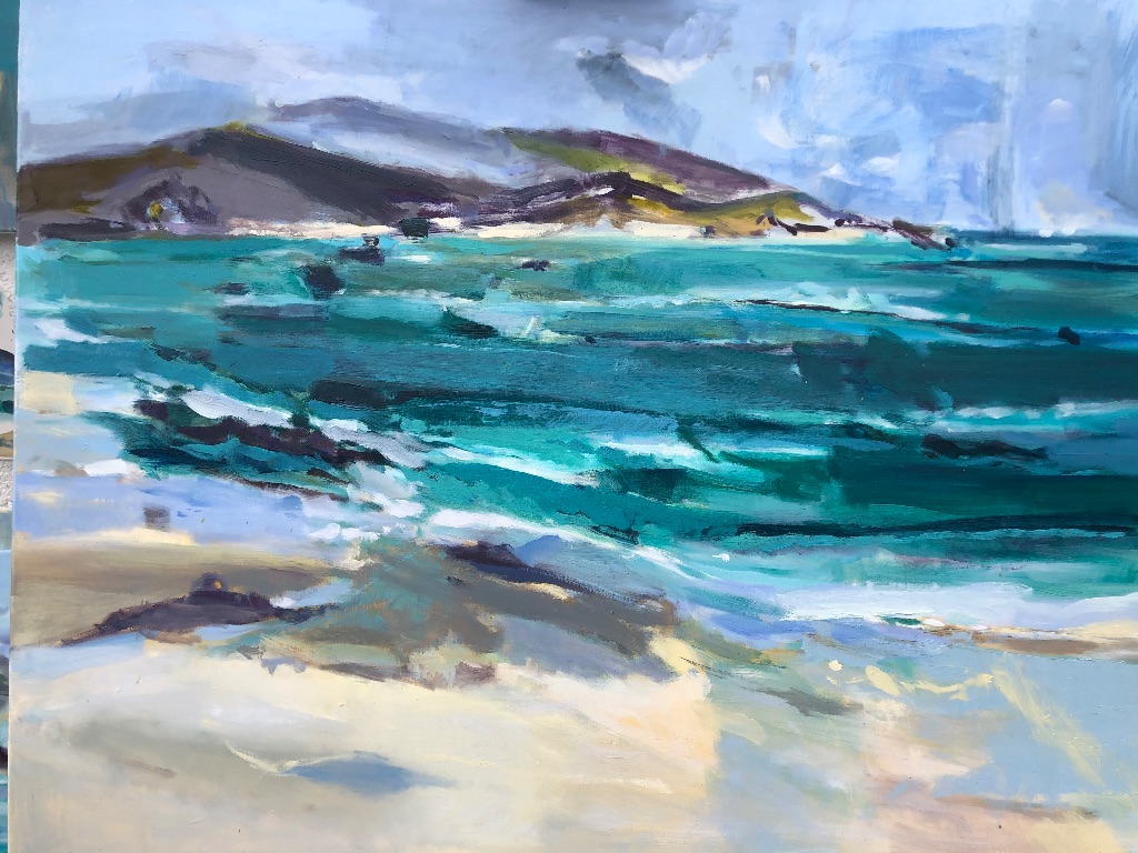 Recent work is about sailing on Scotland’s West coast with the crew from Eda Frandsen where she taught landscape painting on board and more recently an adventure out to Cape Clear Island across Roaring Water Bay in her beloved Ireland.