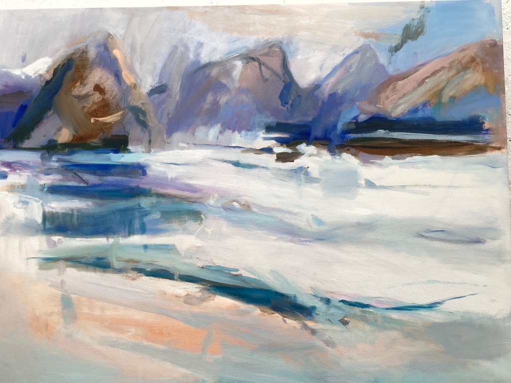 Catherine’s paintings taken from studies made in extraordinary and remote places embody her deep connection with the landscape and her synesthetic use of colour.