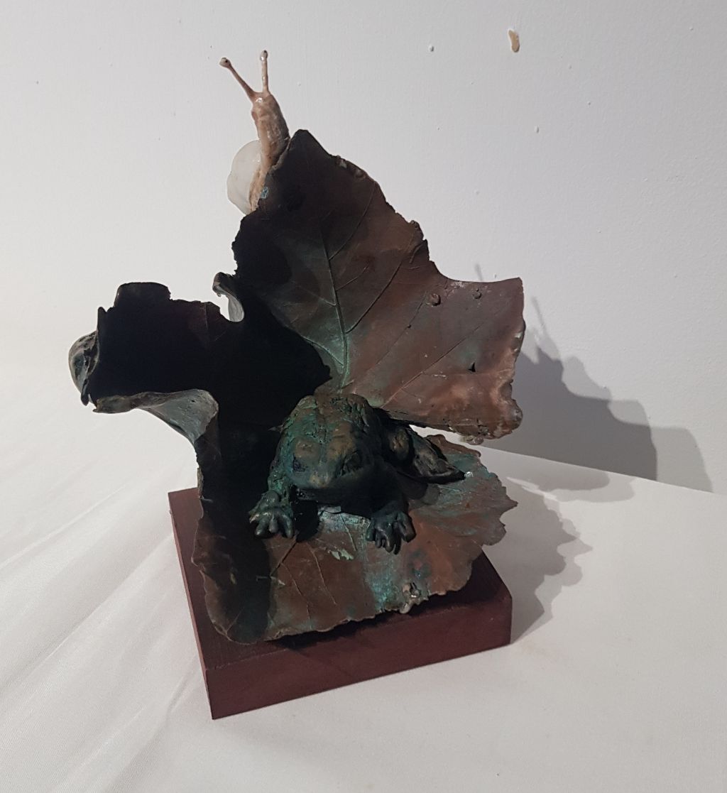 My sculptures are taken from nature and walks in the countryside. I make some pieces from leaves which are cast in resin. I love the different patina effects that come from the metal fillers I use giving my art depth and life.