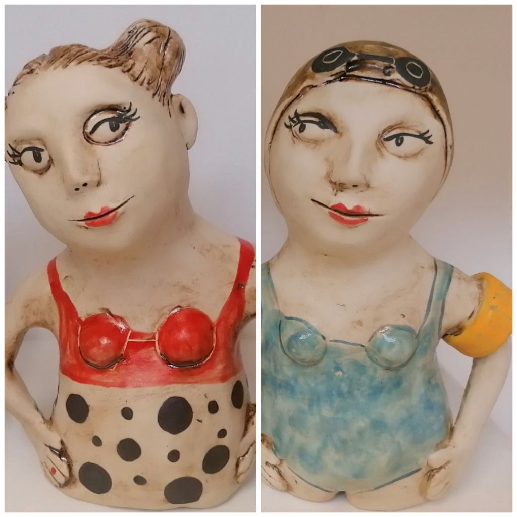 Handmade thrown pottery and sculptures, my colourful wheel thrown pottery is inspired by the sea, nature and swimmers.