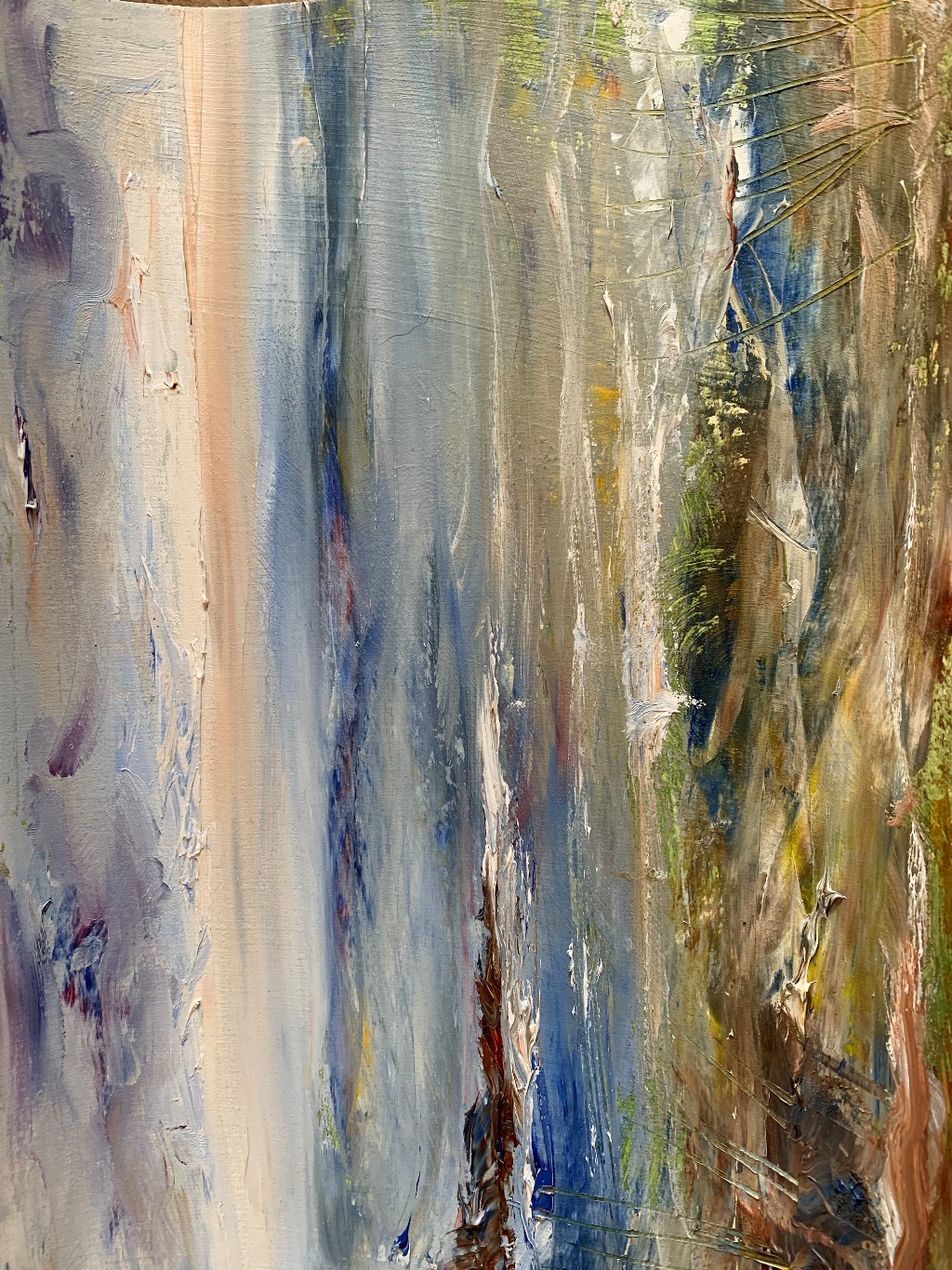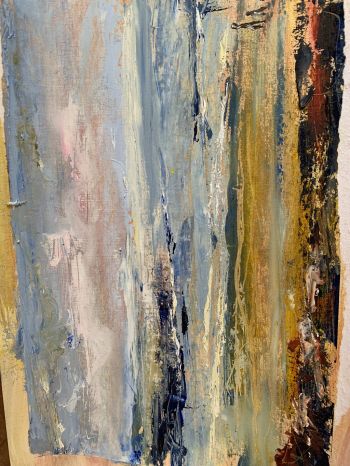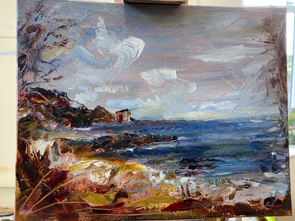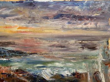 I mostly paint plein air, often just with palette knife. Occasionally I indulge in more studio time, giving more considered responses to subjects, creating refined deeper paintings with my love of vibrant colour and kinetic mark making.