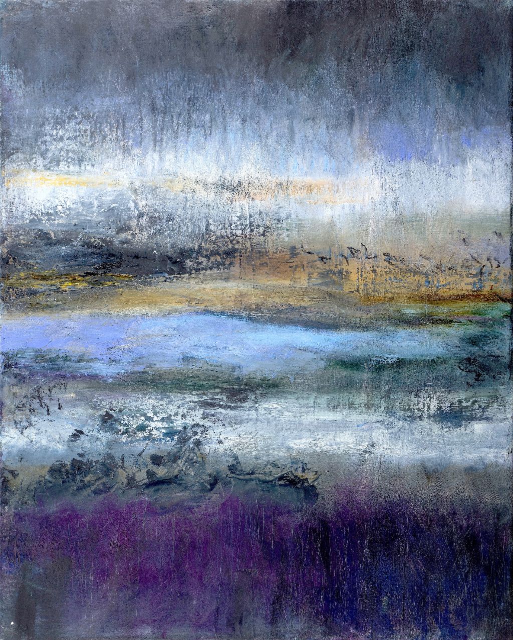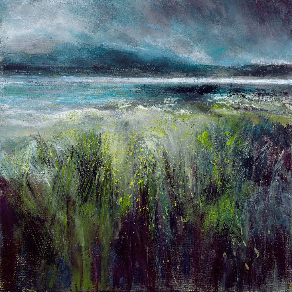 She loves to immerse herself in its wild places, its profound sense of ancient history, variety and richness of character. Here the passing of seasons take on more significance, a greater intensity of change, the energy, the elements, the open skies, the unique quality of light, at times dark and foreboding or at others dazzlingly bright, the storms, the winds and clouds and the feelings they evoke. Gill's soulful work responds to the essence and uniqueness of place.