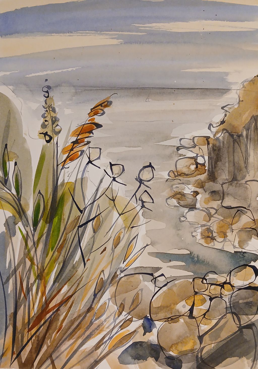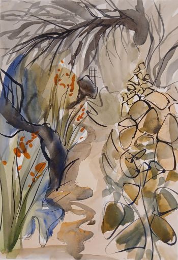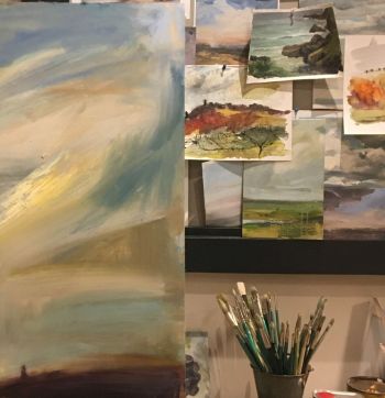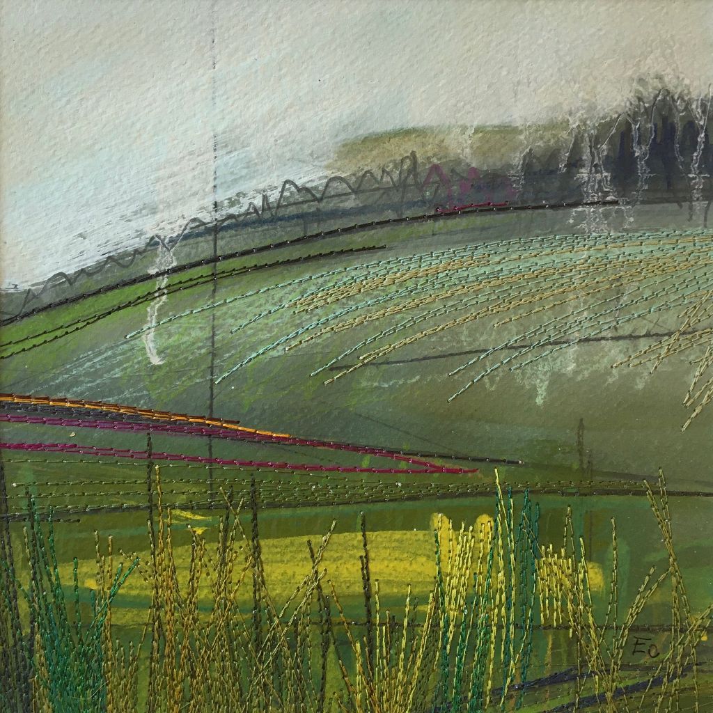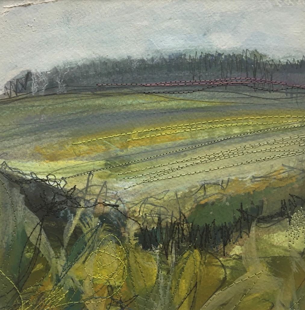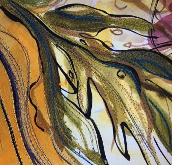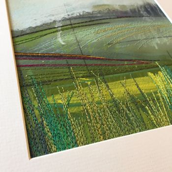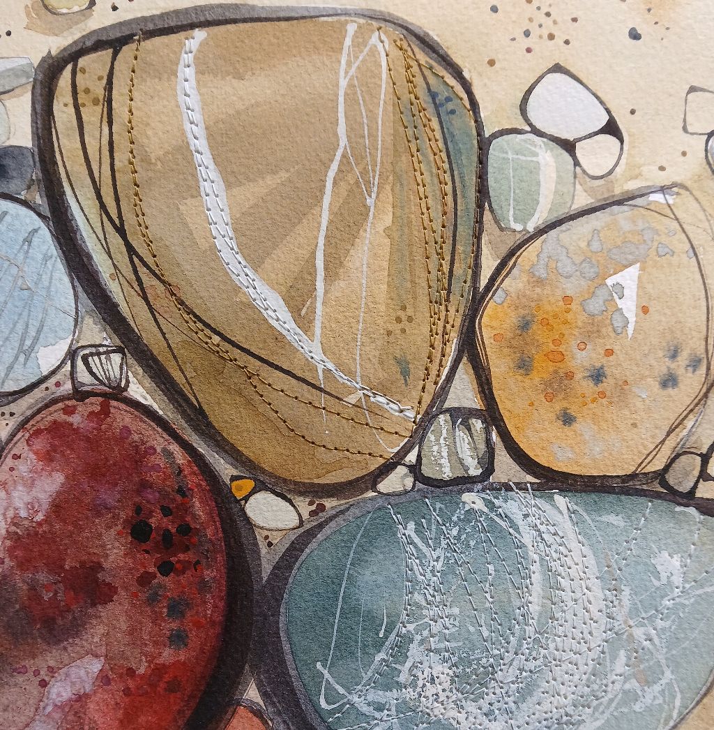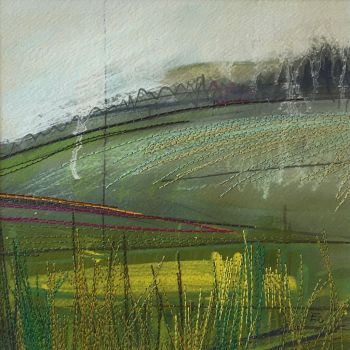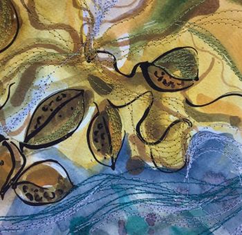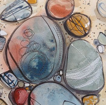 My background in Textile design has enabled me to explore the patterns in everyday life. My subject is purely the Cornish landscapes and natural elements. I use watercolour paints as my starting point and add layers of either collage and stitching adding a tactile element.