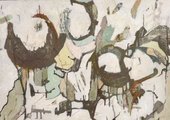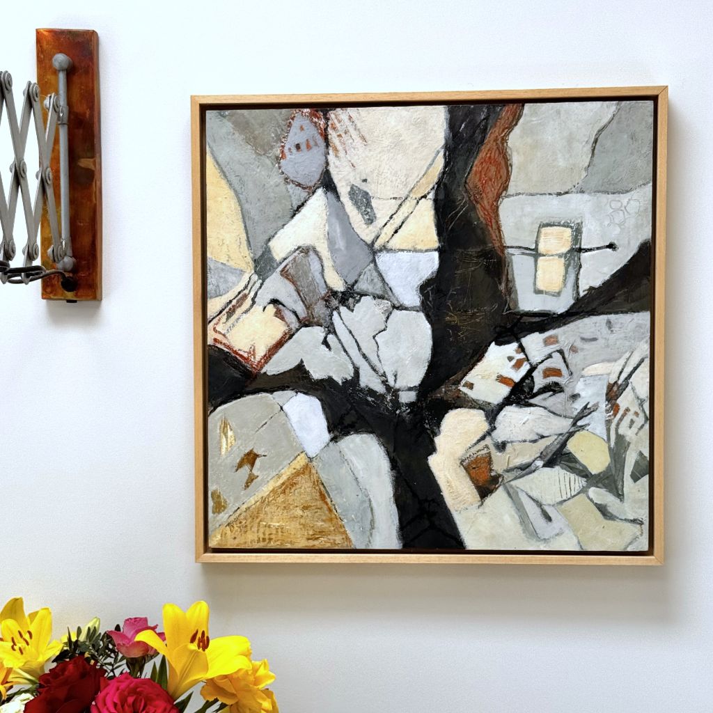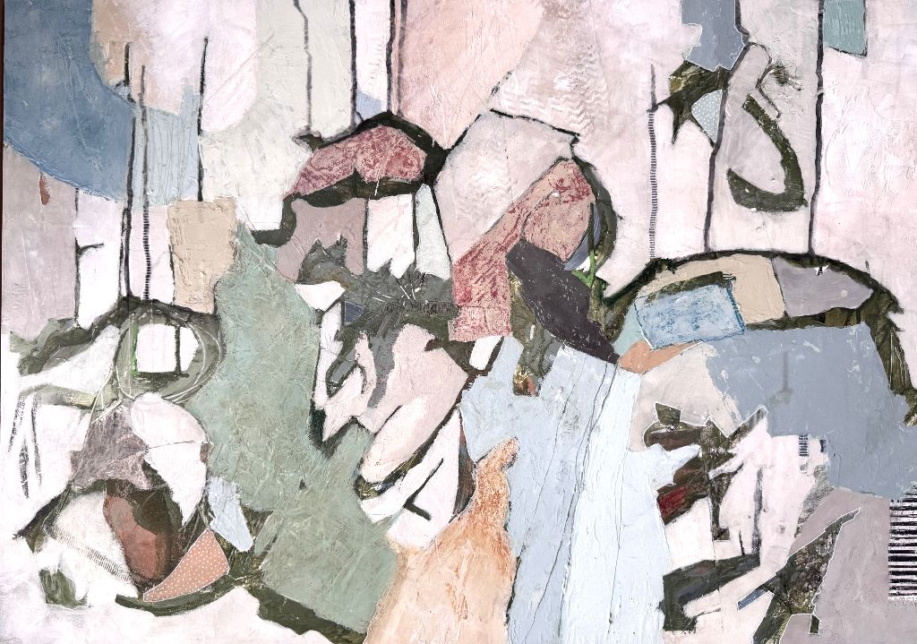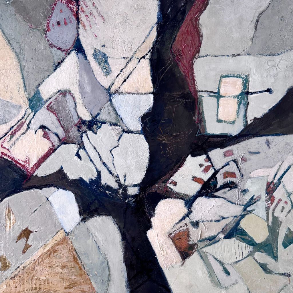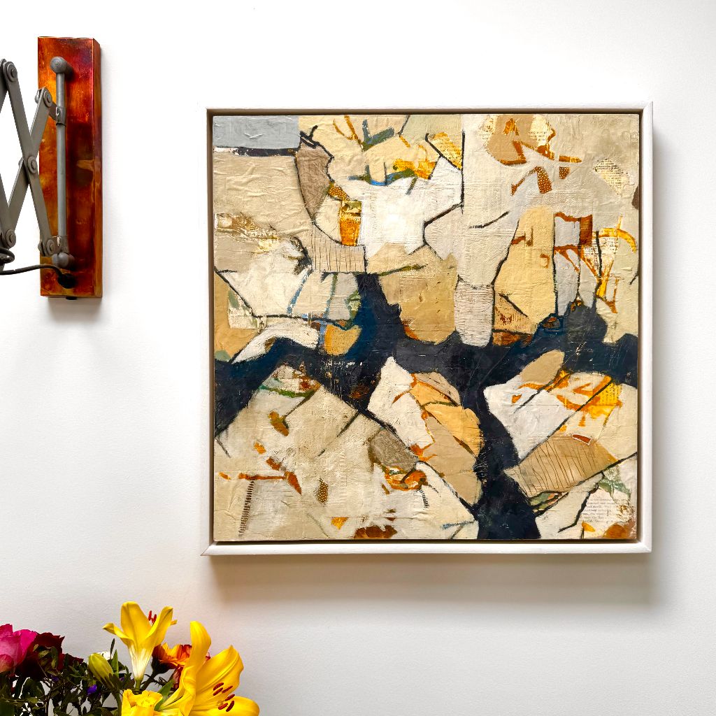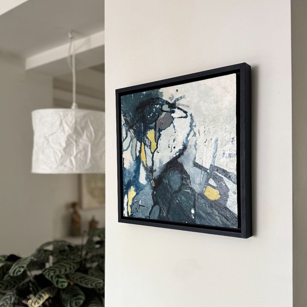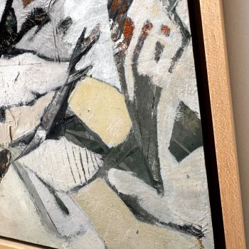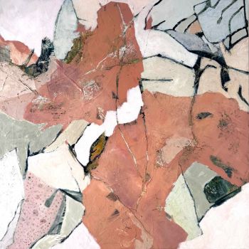 I taking endless photographs of the details that catch my eye and it is these that inform my work back in the studio. Using acrylics and mixed media on board, I work abstractly, often incorporating collage pieces that I have printed myself with natural textures and repeat patterns. I work in many layers of paint, textured gels and collage which are then sanded back and scratched into to reveal previous layers with unexpected results, which echo the erosion and passing of time of the natural landscape.