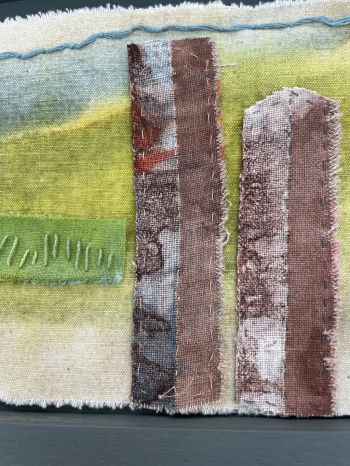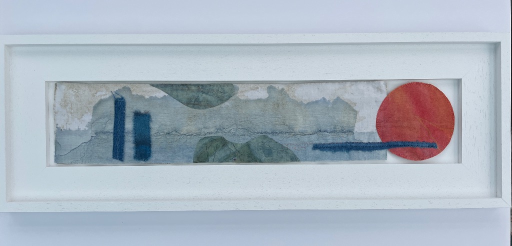 I produce a variety of multi media art works, using a lifelong interest in textiles to explore the possibilities of repourposing natural fabrics with care and purpose. Producing unique pieces of abstracted work, taking forgotten pieces of household linen and making it into new artwork. Techniques used, stretching, dipping, painting, cutting, ripping, folding and using many years of knowledge of machine and hand stitching to create an individual style.