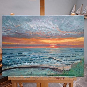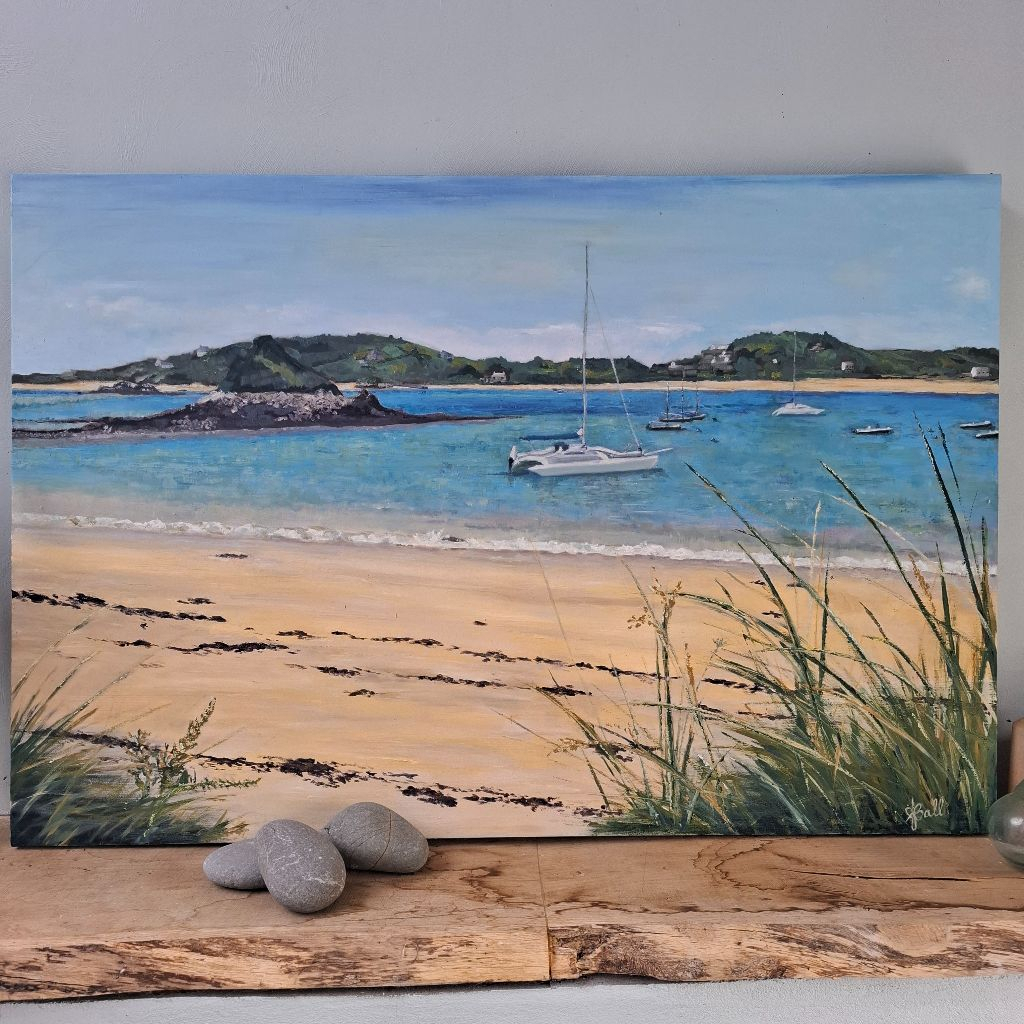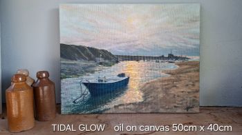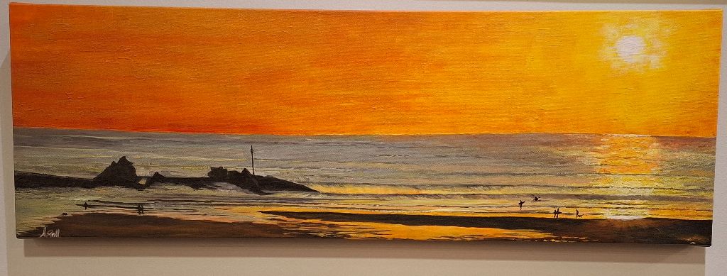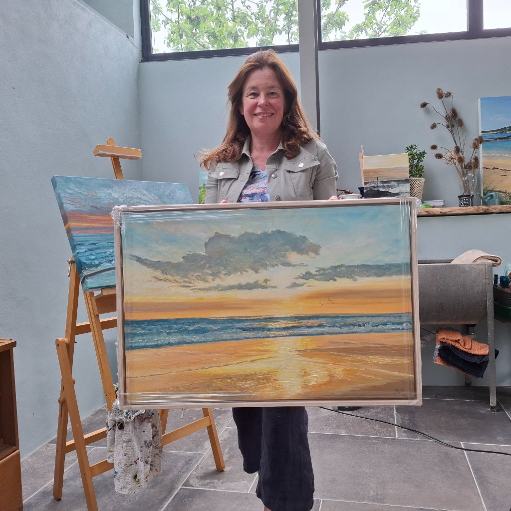 Based in Stratton, North Cornwall in my home-garden studio, as a self taught painter this adventure has evolved over several years whilst still spending most of my professional life as a retail buyer and visual merchandiser for the family business at Wroes in Bude. I love to explore shapes, light and our connections with the naturally beautiful and inspiring local landscapes. My desire to experiment with colour, layering oils and capturing moments of our coastline through the exquisite light found year round here in Cornwall. This always brings a relaxed happiness and energy as I delve into new challenges, following instinct rather than rules and learning to enjoy the experiment. I hope to introduce textural materials into my artwork in the future. Working in oils predominantly with some occasional watercolours you will find my airy studio a place to relax, always a tea or coffee available. Here you can see a range of originals and work in progress along with a selection of limited edition signed prints and greetings cards. I look forward to welcoming you to my 'sanctuary'.
