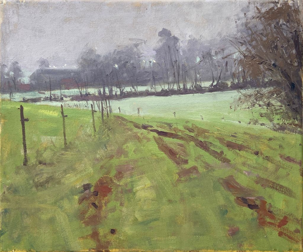 He works in a variety of media but favours oils, casein paints and charcoal. He works outdoors (en plein air) and from his studio at Krowji.