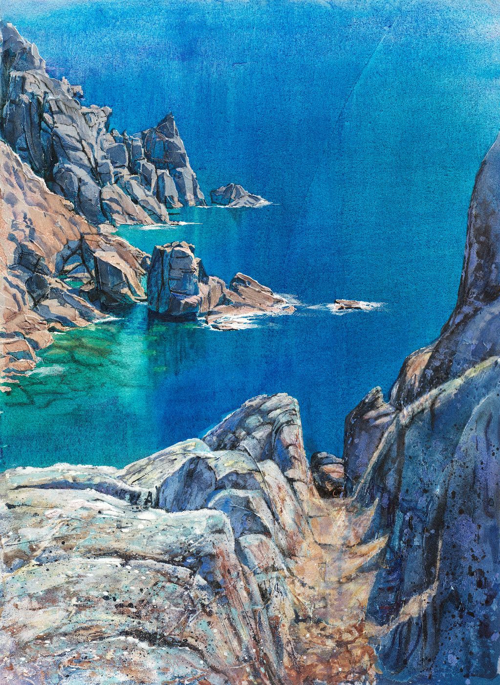 I am an established professional landscape painter well-known for my adventurous use of watercolour. My latest work shows much more experimental techniques using texture as well as fluid washes.