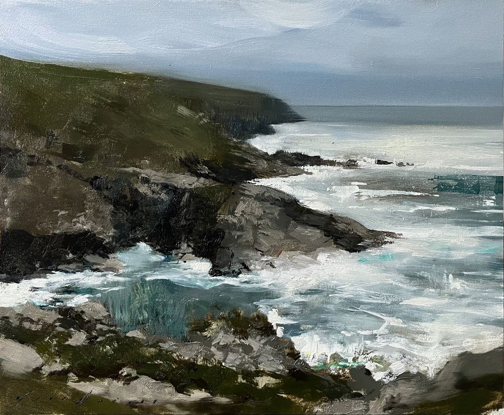 Jon Doran's oil paintings explore traditional subjects such as landscape, still life, and figurative forms through a disrupted realism. His practice combines contemporary techniques with a classical underpinning in drawing. Surfaces are often marked by scrapes and slashes; yet, when viewed from a distance, the image resolves as a whole. His work pursues a reflective, contemplative sense of the sublime, seeking moments of peace within the modern age. Through a considered use of colour, tone, and the poetics of light, his paintings convey the elusive qualities of the Cornish atmosphere in which he works.