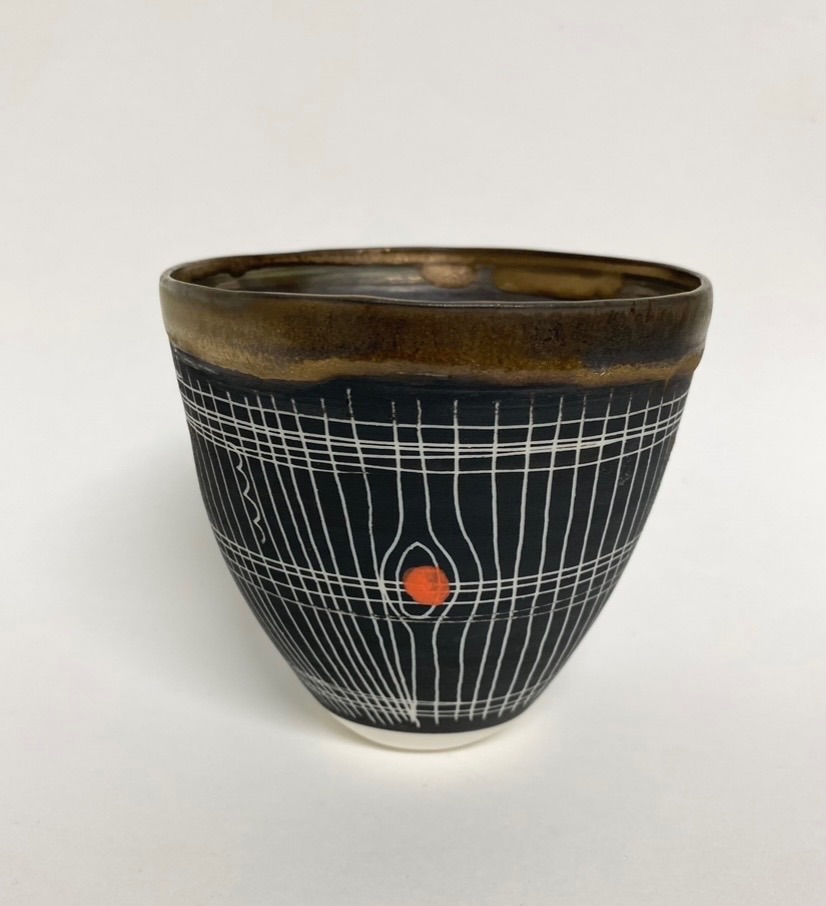 Unique porcelain vessels thrown on the wheel, I endeavour to create forms that evoke a sense of curiosity, not only with form specifically but also with finishes by using textured surfaces, layered slips, glazes and oxides that create metallic accents. Often fired several times, I embelish with additional layers between each firing to create a sense of timelessness, stillness and presence.