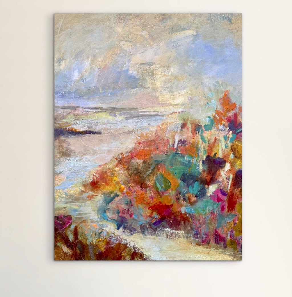 ‘Being in nature brings me into the present, whether that is battling against a strong wind on a headland, or basking in the sun in a sheltered cove. When I immerse myself in nature, I come back altered, refreshed and renewed and it is this healing power that I wish to convey in my paintings. I’m inspired by the idea that a painting can be a touchstone to these feelings of wellbeing, a way to reconnect the viewer to a moment they felt this way too.’