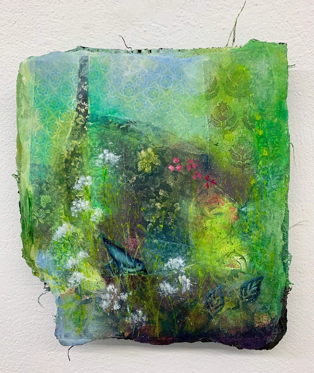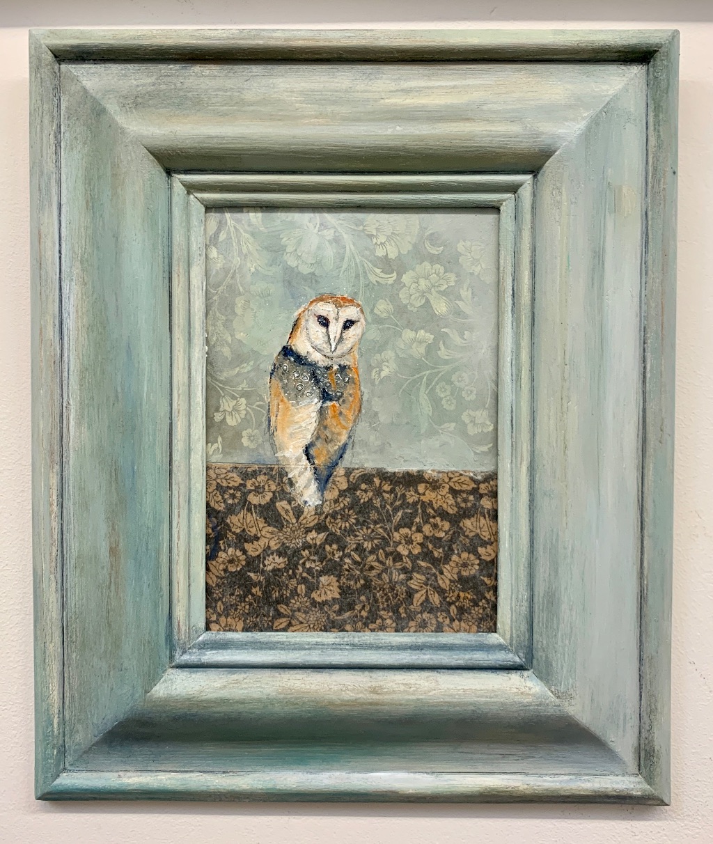 I like to use recycled materials such as cardboard and wood in my paintings and frames and recently I have been using mostly oils .