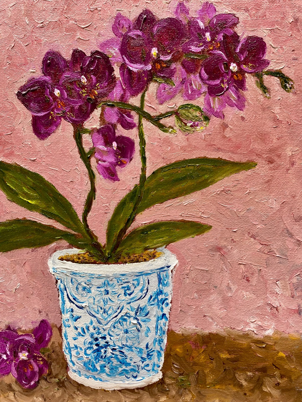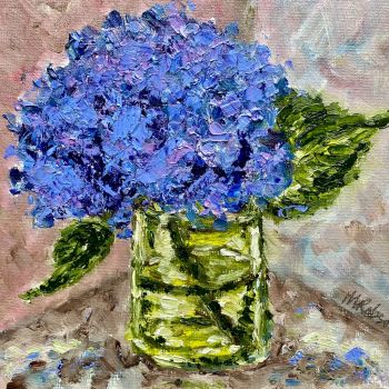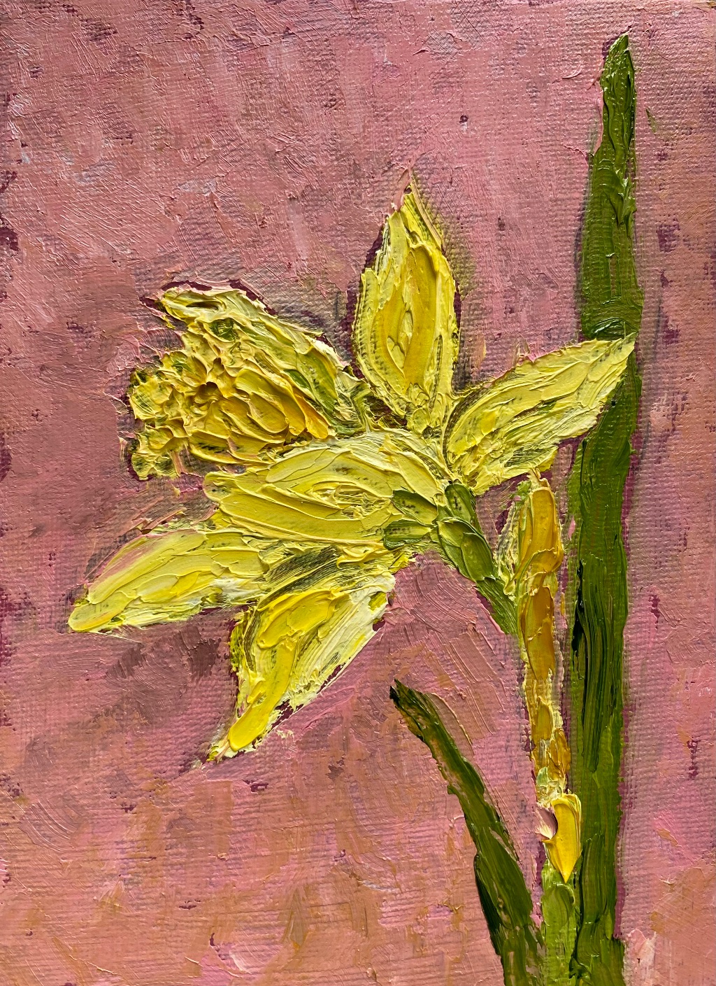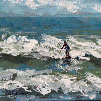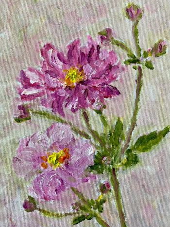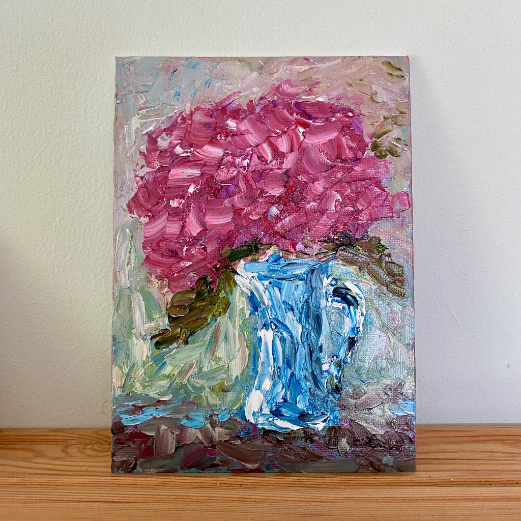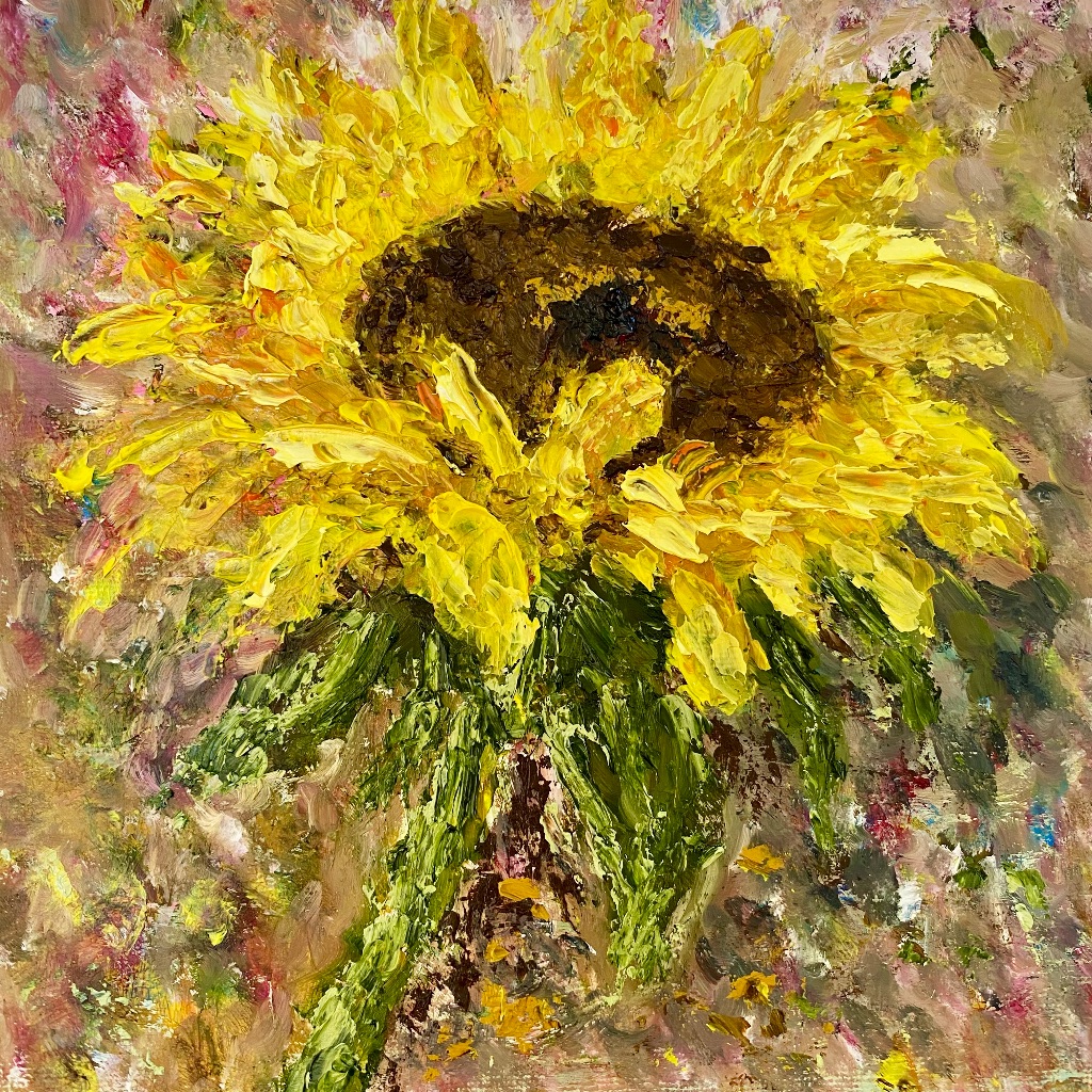 I have recently moved back to my beloved Cornwall, following spells of living in London and North Yorkshire. I am delighted to be living near the beautiful coast which has always been a source of great inspiration for me, and I find the gentle energy of southern Cornwall really speaks to my style of painting. I love to paint the sea, but also find great joy in flowers, fruit and interior scenes. I work quickly and intuitively, usually with oil paint which is often applied with a palette knife to create a dynamic effect. While the subject may vary, a focus on texture, light and vibrancy is a common theme across all my work.