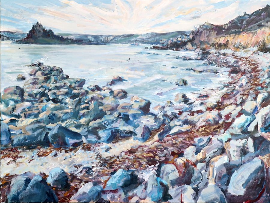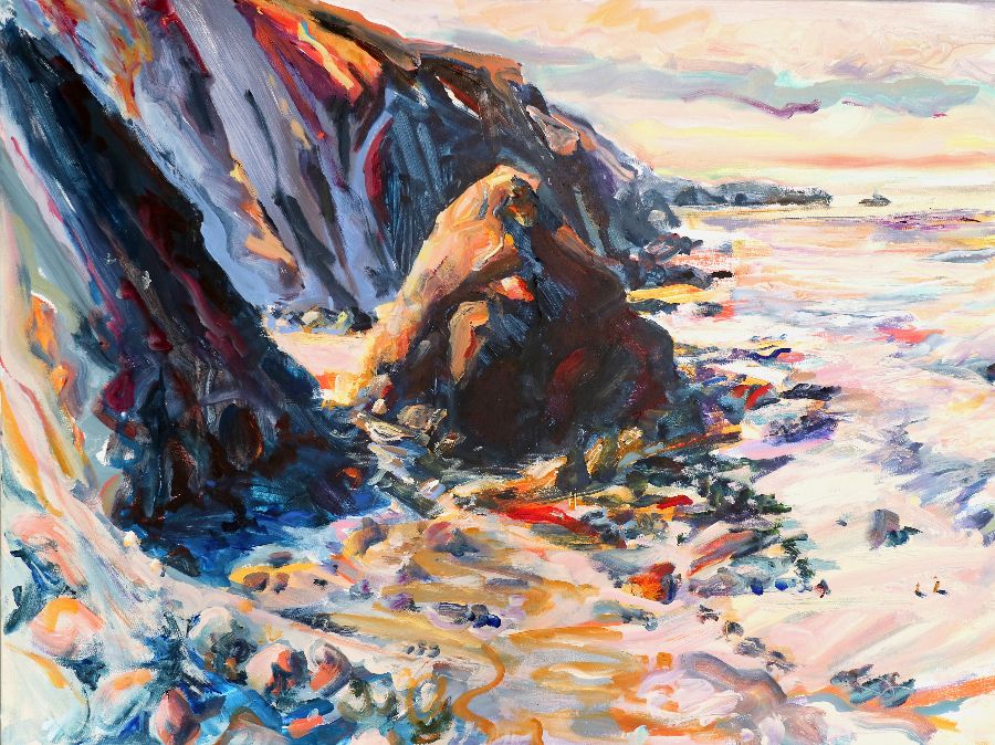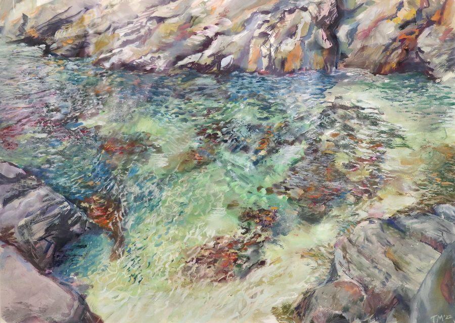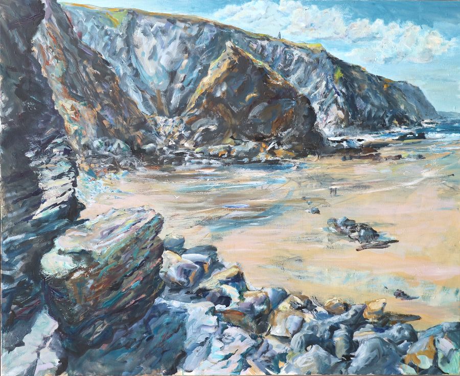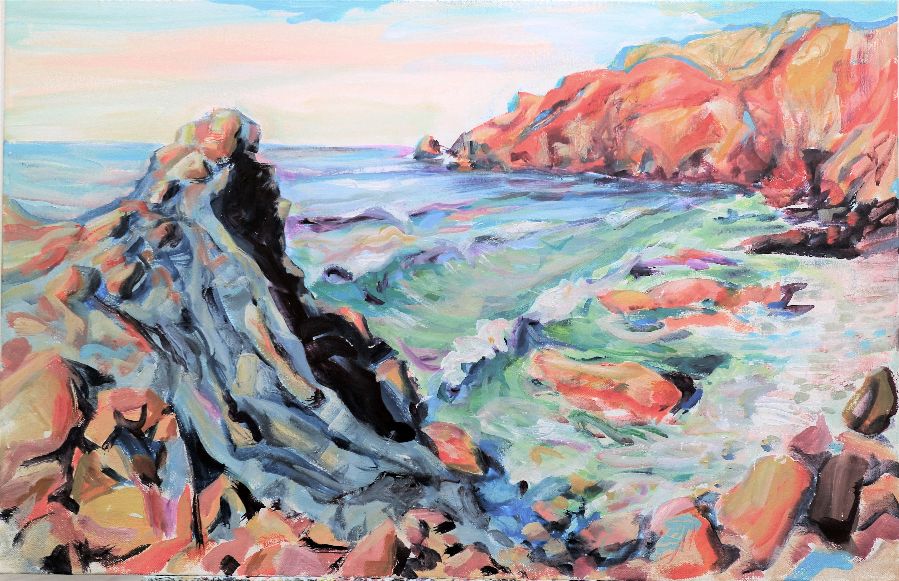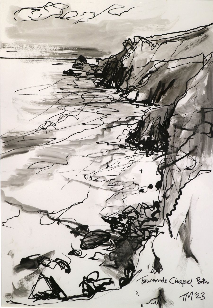 Tony Minnion lives and works as an artist in Redruth and paints and draws the nearby rugged North Coast of Cornwall capturing the energy and primal forces of the Coastal landscape. Drawn to the cliff edges and plummeting drops his vigorous and expressive contemporary paintings portray this dramatic landscape with free flowing bold strokes and heightened colour. He has worked from his studio in Krowji for the last 18 years and his paintings, drawings and screen prints are well respected, popular and affordable.