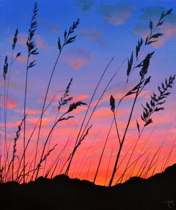 Theresa works from her home studio, close to Penzance prom. Her work is instantly recognizable and reflects her love of colour, contrast and bold shapes.